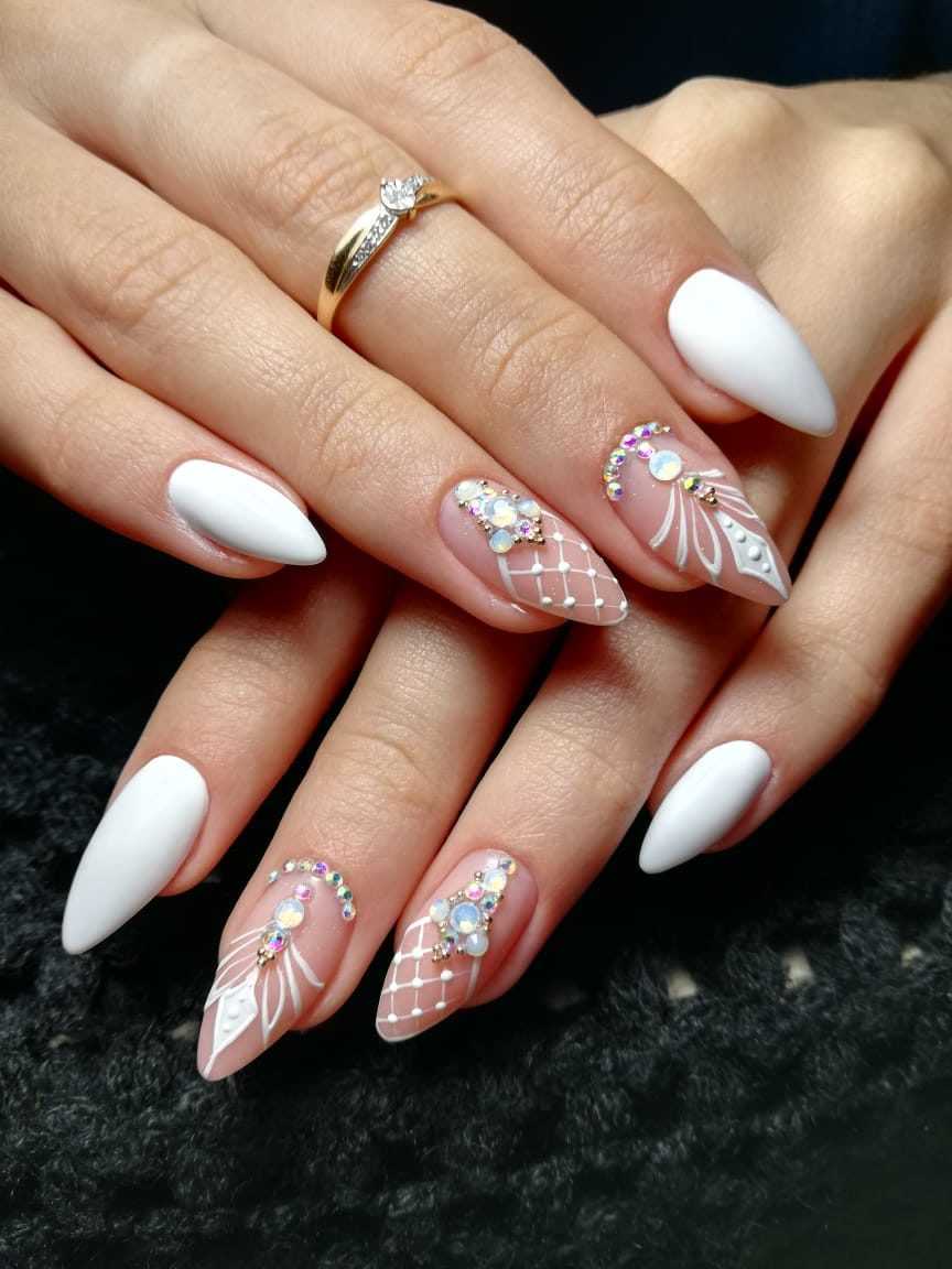 Прекрасно дополняют маникюр, придают ему изящество и утонченность. Хрустальные стразы считаются наиболее качественным материалом
