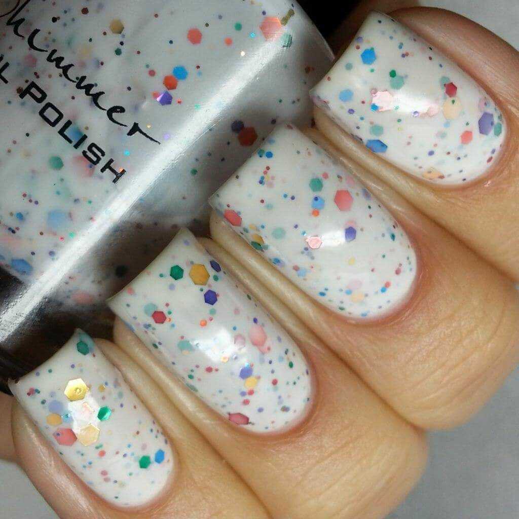 Хоть камифибуки и довольно неудобные в использовании, зато выглядят они очень празднично и весело. Само название конфетти намекает на то, что этот декор будет уместен при оформлении сладкого маникюра.