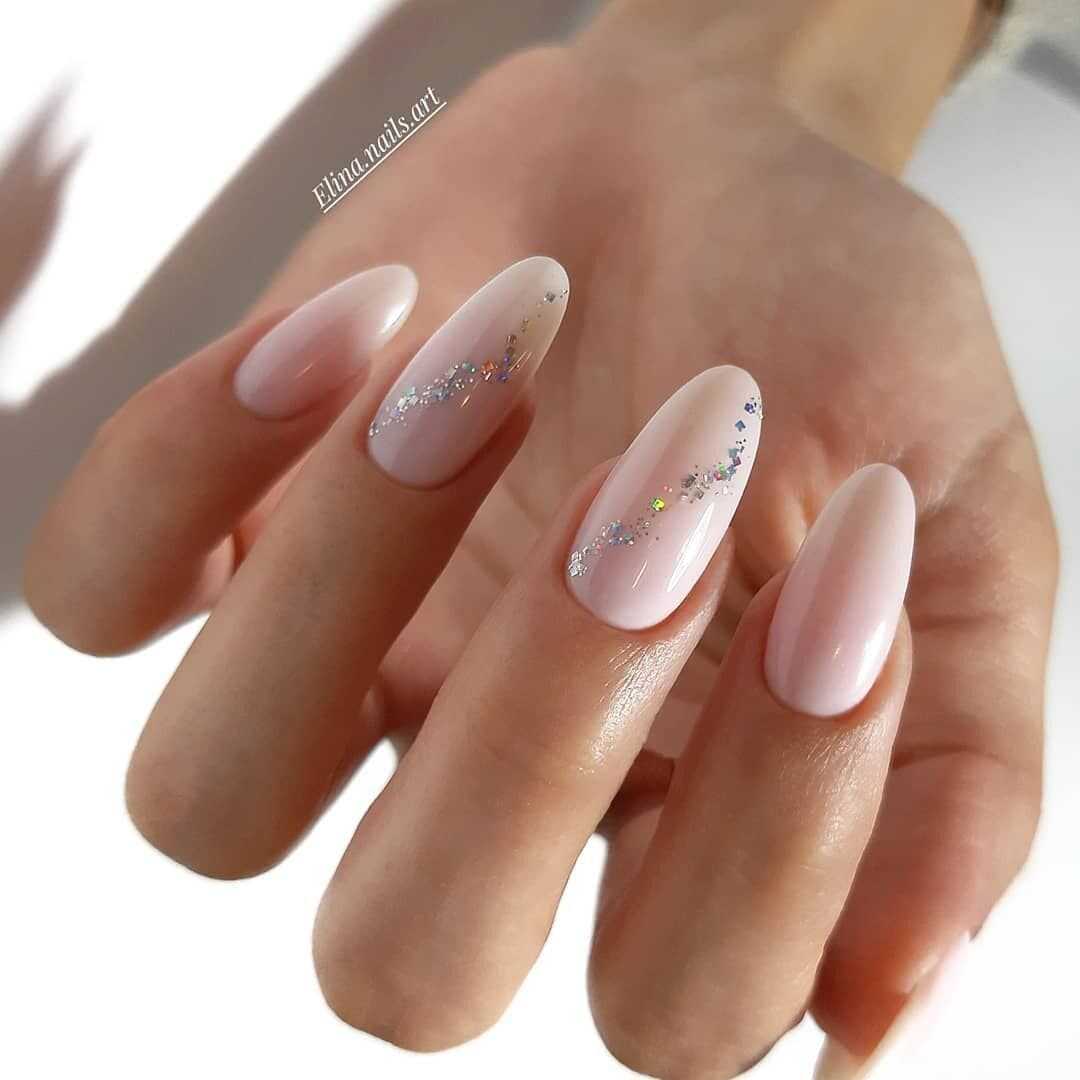 Этот материал зарекомендовал себя как незаменимый помощник в дизайне маникюра. Особенность блесток в том, что их мерцание придает оригинальности простым идеям нейл-арта. Если вам удастся не переусердствовать с декором, сияющие ногти всегда будут смотреться изящно и дорого.