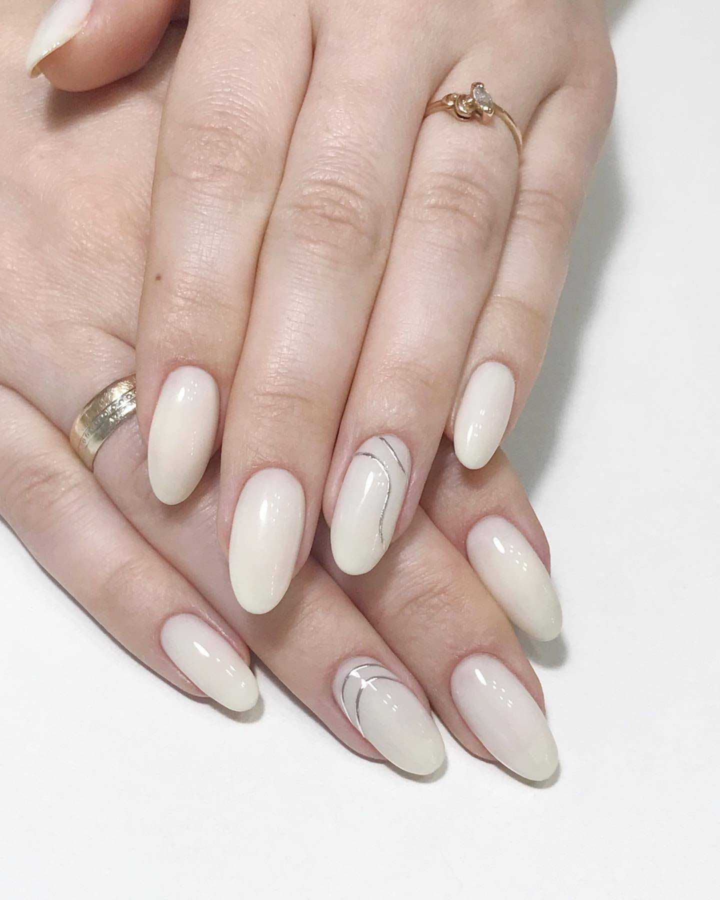 Молочный цвет в маникюре шикарно и эффектно смотрится на загорелых руках. Стоит помнить, если у вас бледная кожа рук, то молочный цвет ноготков может сделать её ещё светлее. В таком случае есть решение – с таким маникюром хорошо будет смотреться ваш наряд в кремовых оттенках. Любите элегантный стиль – носите белую одежду