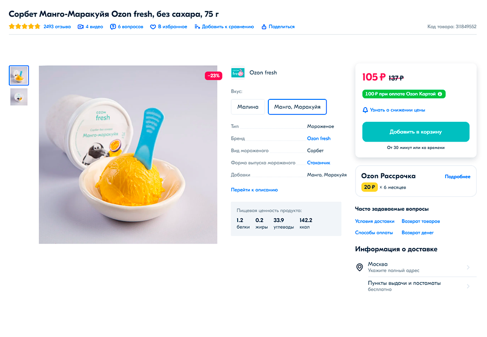 Для чего подойдет: порадовать себяНеобычные варианты: мороженое с протеином, сорбеты