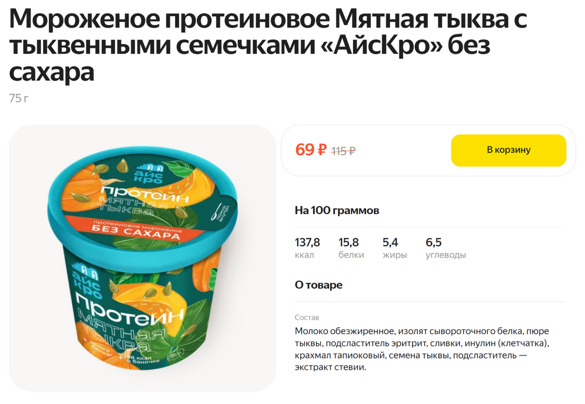 У брендов сладостей для спортсменов можно найти мороженое без сахарозы с протеином. Мне они кажутся приторно-сладкими, поэтому я попробовала их один раз и больше к ним не возвращалась.