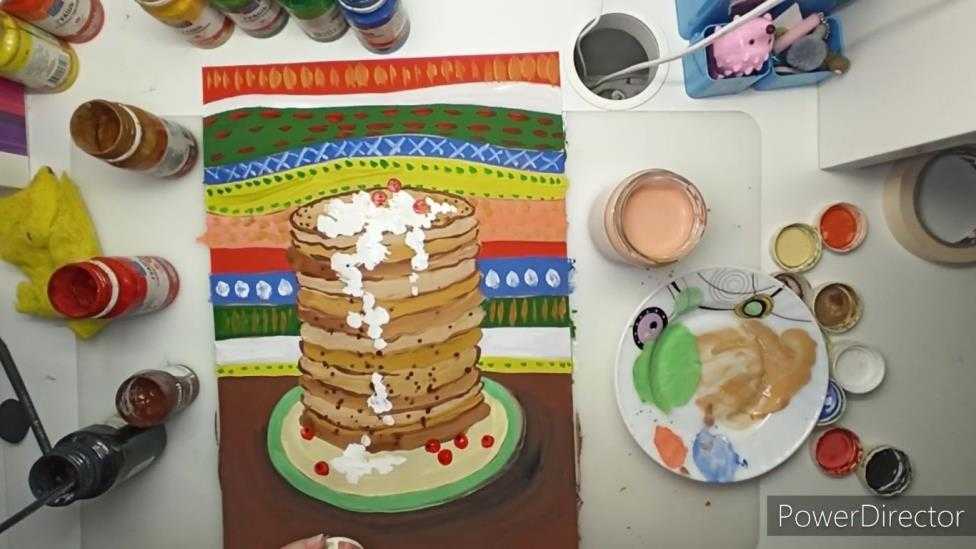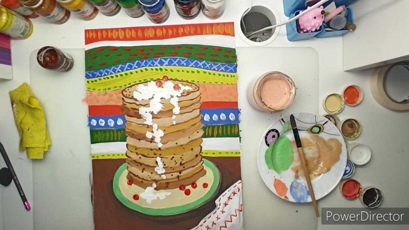 Берите скорей кисточки, краски и начнем. Поэтапно повторяйте шаг за шагом и вскоре очень легко и просто мы нарисуем стопку блинов, такую картину можно подарить или украсить стену на кухне. Главное будьте внимательны и подберите правильные кисточки, тогда результат будет хороший.
