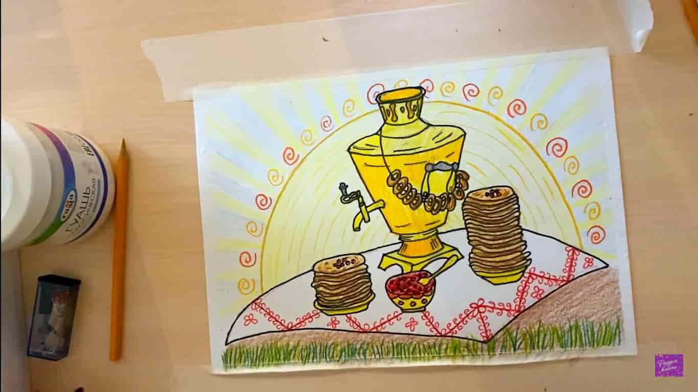 Рисуем масленицу для продвинутых: идея рисунка для детей 4 и 5 классов