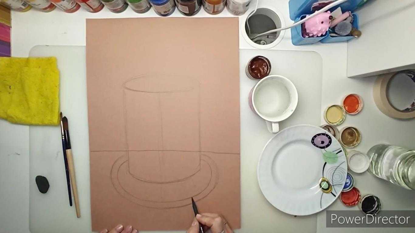 - первым делом срисовывают шест для чучела и изображают его голову;