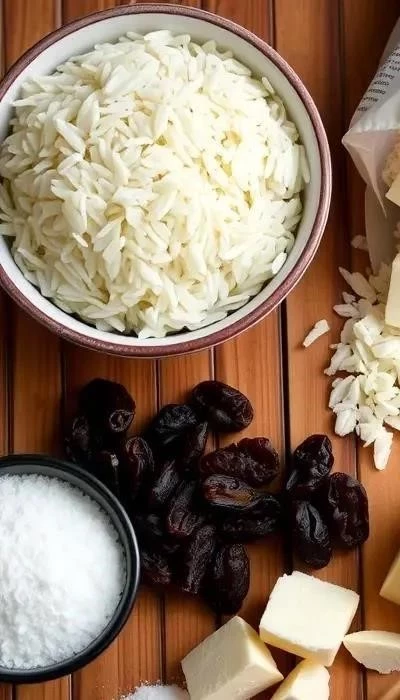 Для приготовления пирога с рисом и изюмом нам потребуются качественные ингредиенты. Рис (120г — 1 стакан), изюм (50г — 1/2 стакана), яйца (2 шт), молоко (3.5 стакана), сахар (1/2 стакана) и сливочное масло (2 ст.л) – основа нашей выпечки.