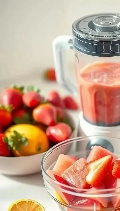 - Измельчение: Используйте мощный блендер или соковыжималку со специальной насадкой. Ягоды или фрукты измельчите в пюре вместе с питьевой водой. Периодически останавливайте блендер и перемешивайте массу, чтобы все равномерно измельчилось и не осталось крупных кусков.