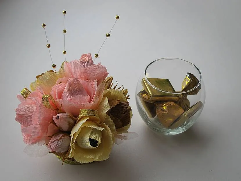 Оформление букета с искусственными цветами в стиле свит Источник dizainvfoto.ru