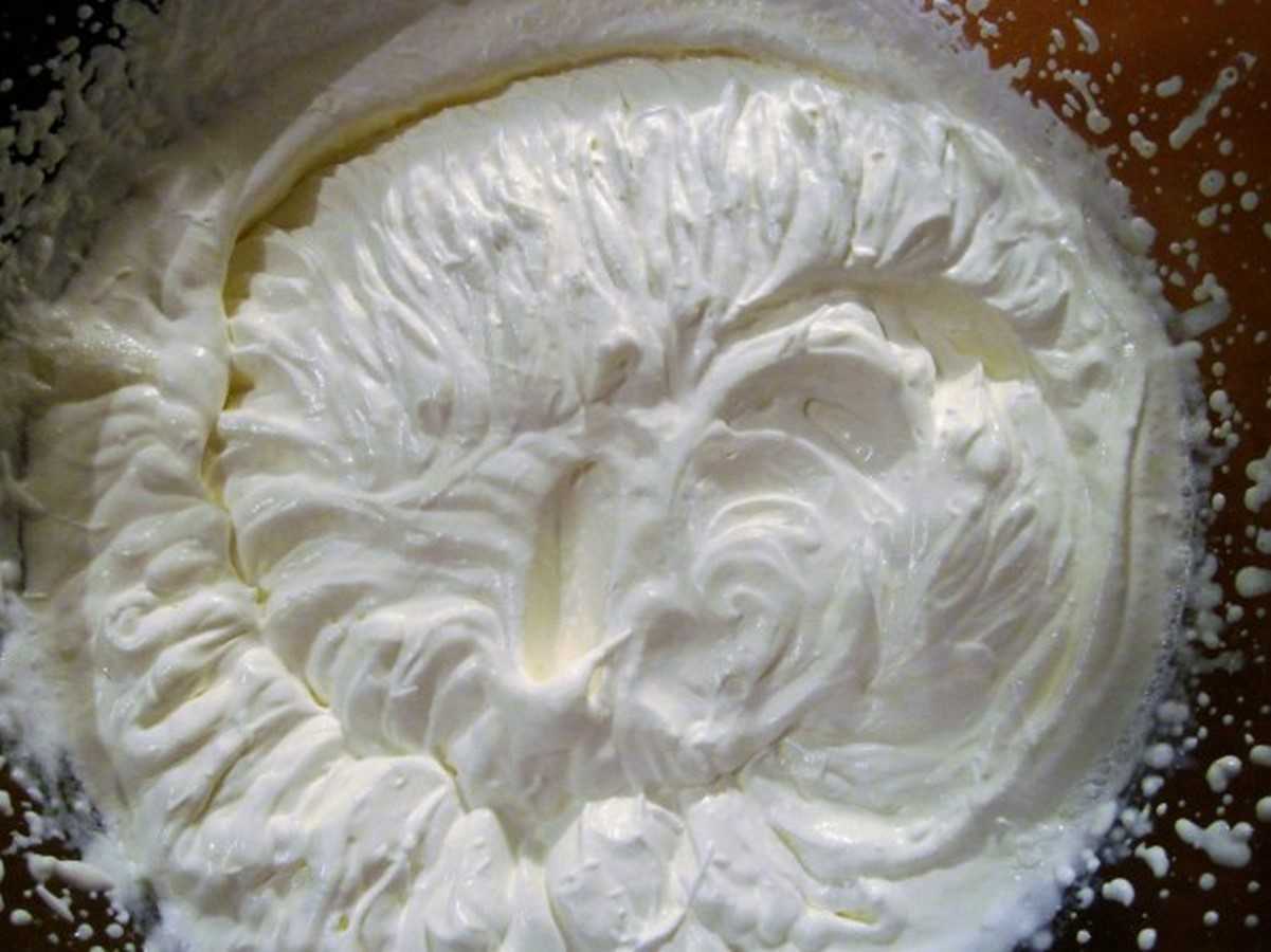 Взбить 700 грамм сливок. Если у вас не такой большой торт, как у меня, то меньше. У меня 3 кг, но это с весом мастики.