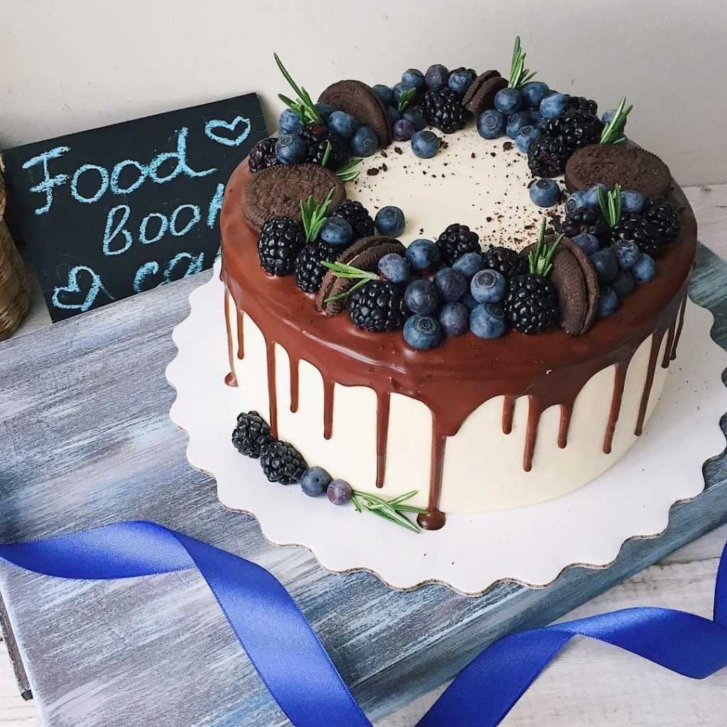 Можно и заморочиться с декором, сделав торт с фруктовыми украшениями, фигурками из шоколада.