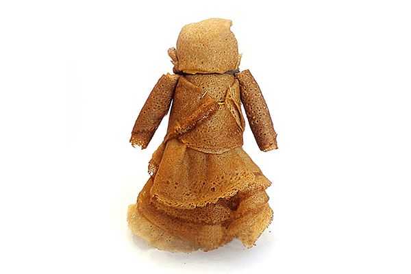 Туловище укрыть небольшим кусочком блина. Сзади закрепить.