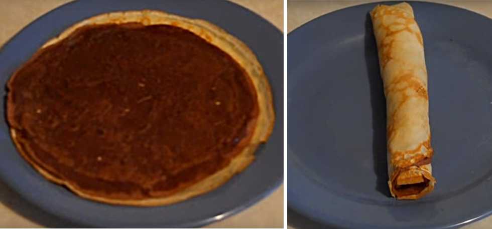 - Аккуратно, с легким нажимом свернуть блин в ролл;