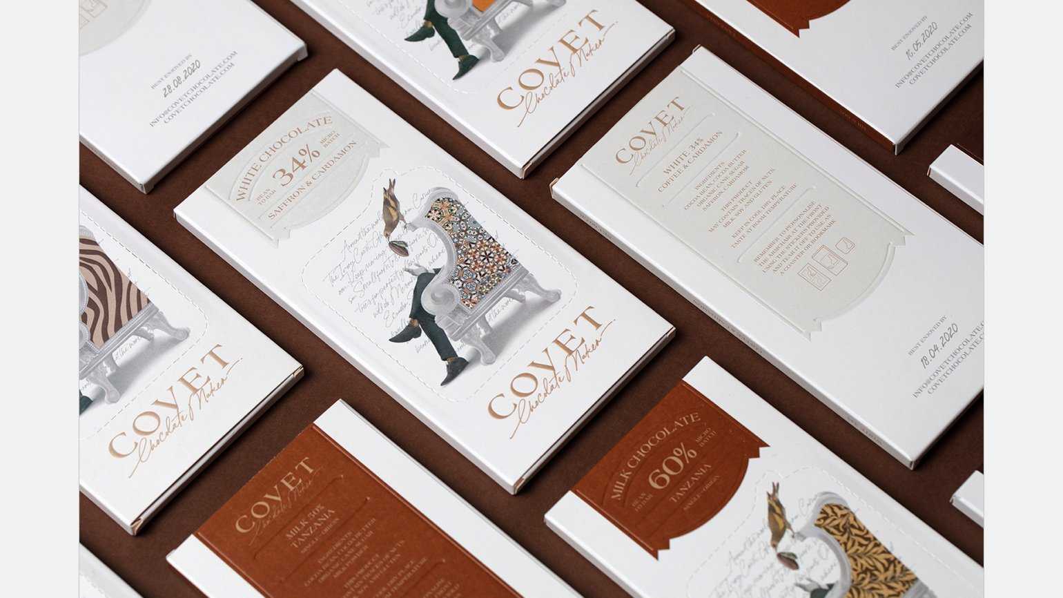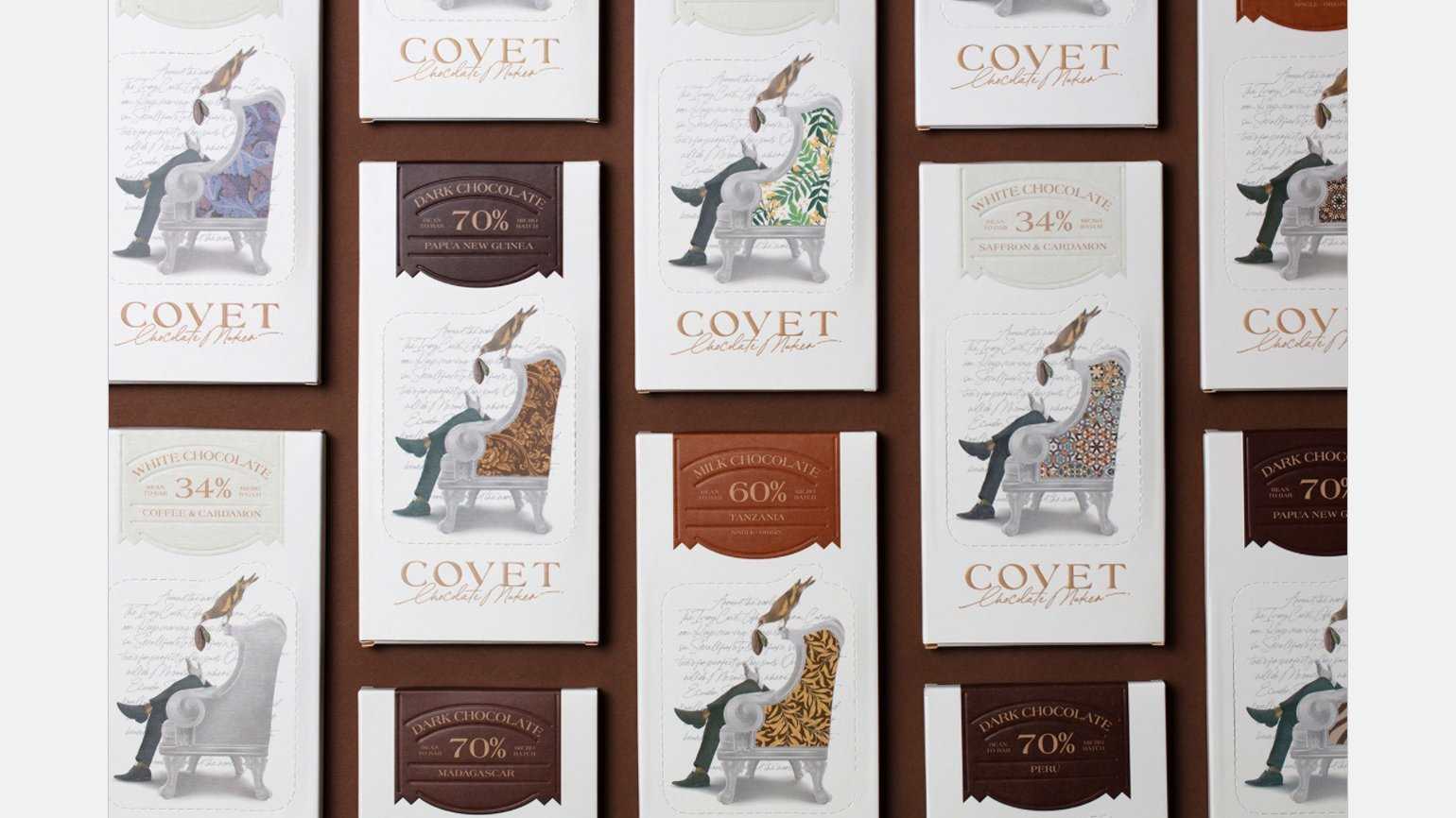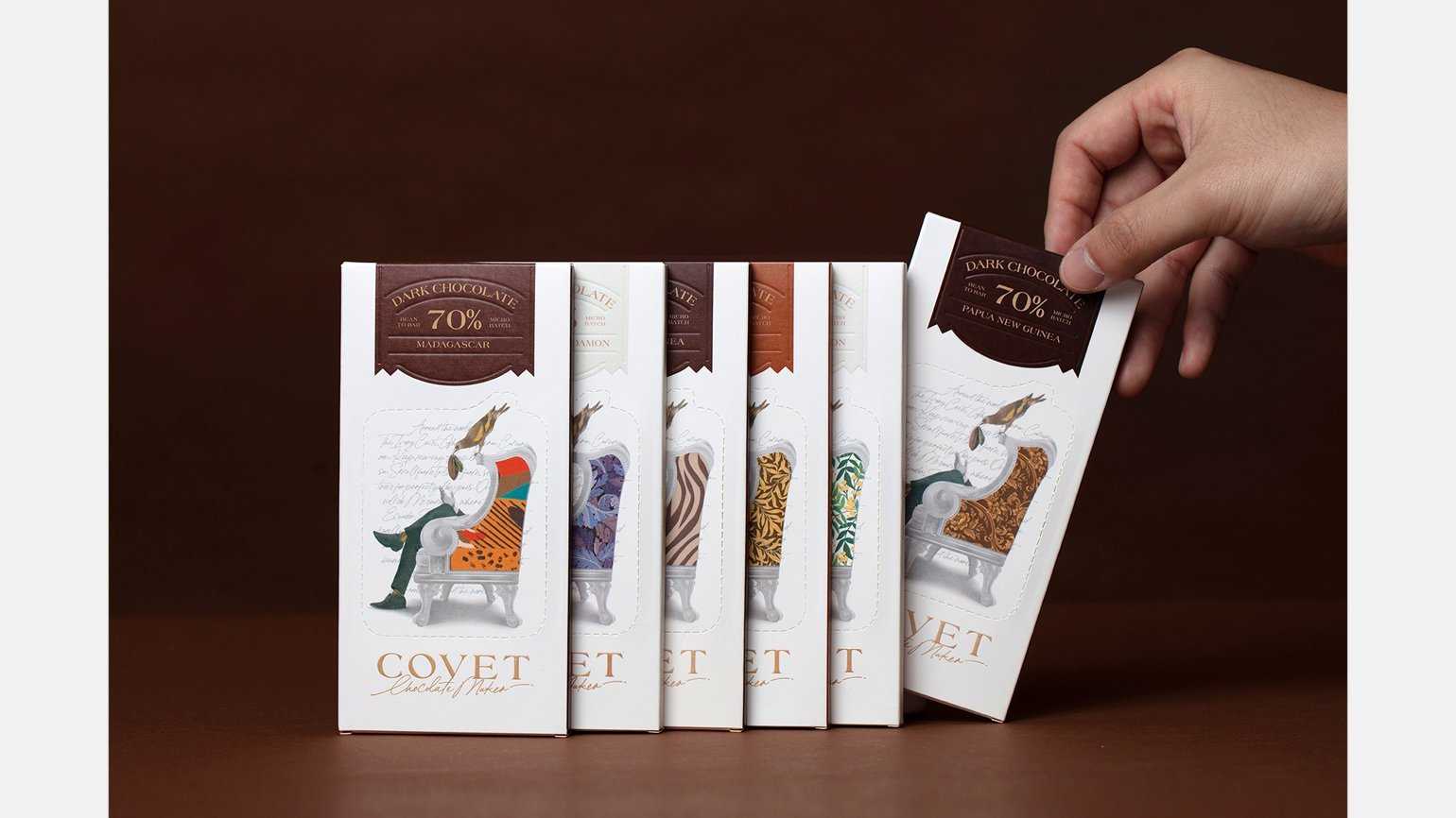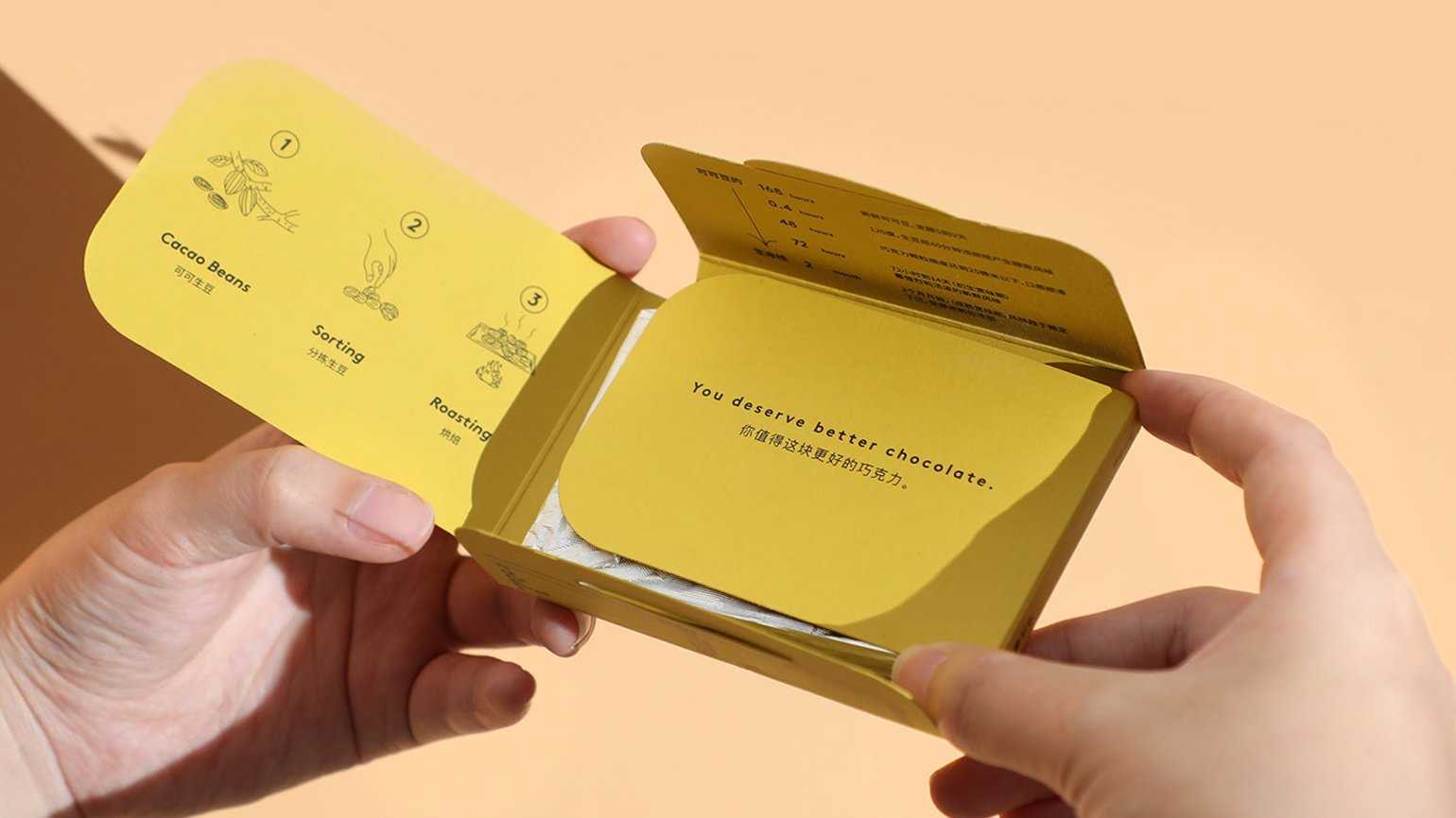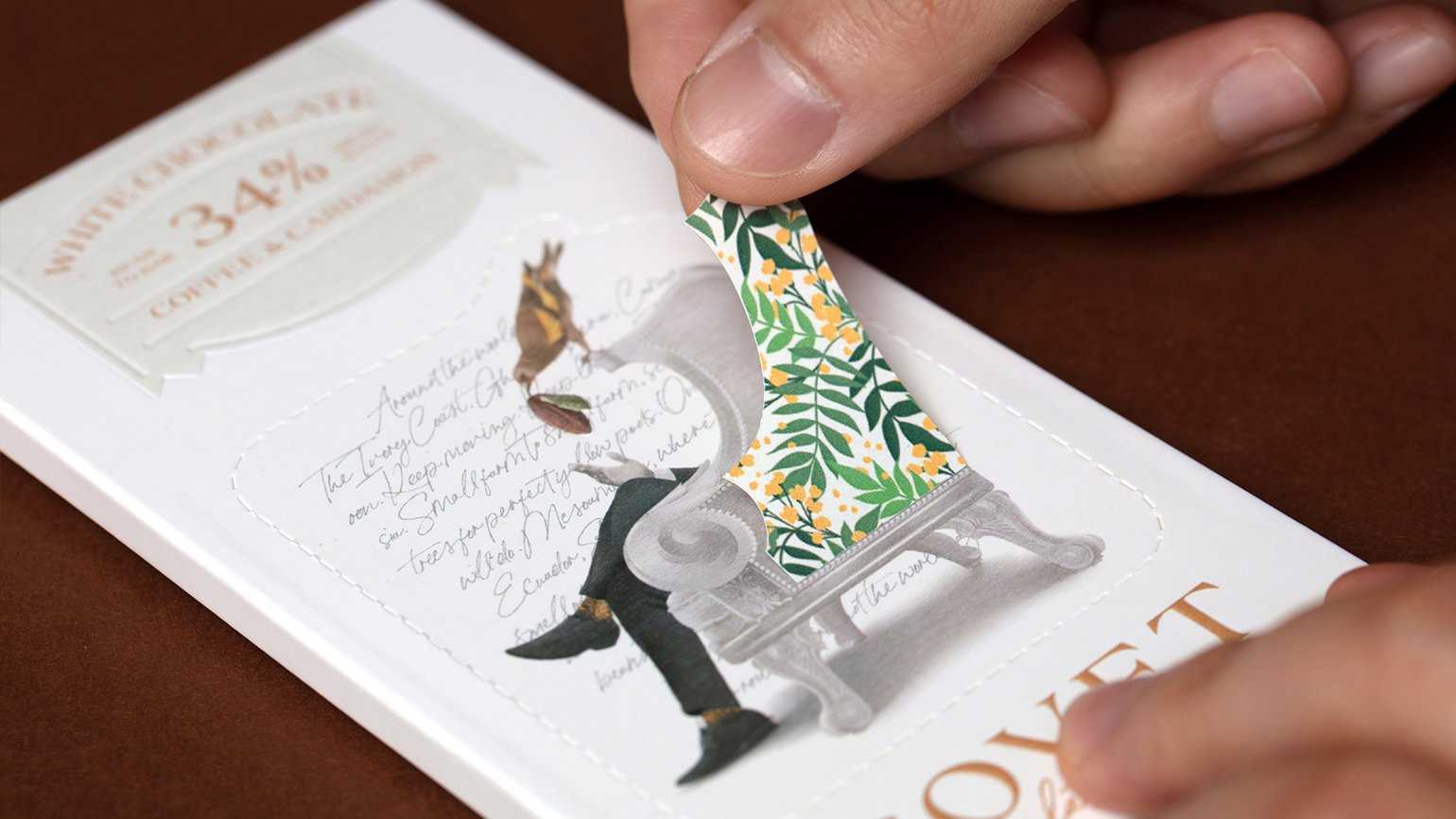 Главную иллюстрацию упаковки дизайнер из Китая Мэн Чжат нарисовал цветными карандашами. Изображение должно натолкнуть покупателя на вопросы: «Кто этот мужчина, сидящий в кресле, — путешественник, ценитель шоколада или шоколатье? Какова его история?» Эта недосказанность вместе с текстом стихотворения на заднем плане создает эффект метафоры — производство шоколада бренд считает творчеством.