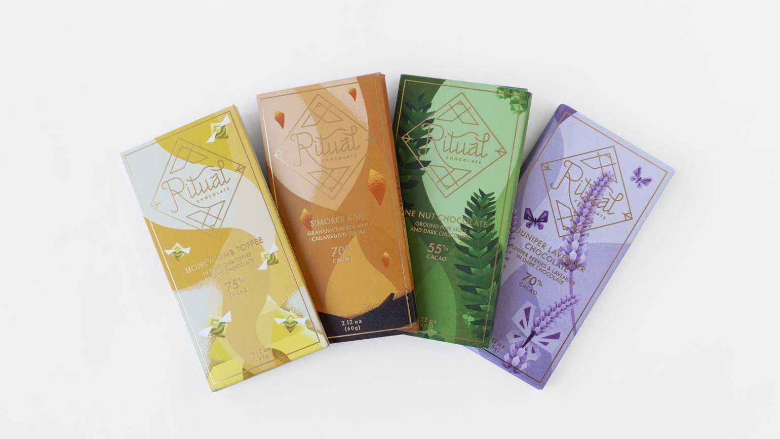 Создатели Rituals живут в гористой местности Юты, в городе Парк-Сити, и вручную производят шоколад. Упаковку для него разработали дизайнеры студии Modern8.