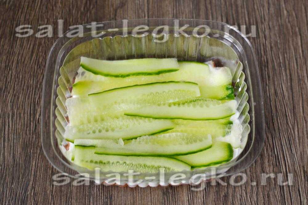 Потом кладём огуречные слайсы