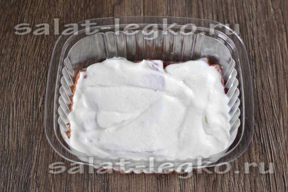 6. Сливки с сыром взбиваем до однородности, полученным кремом смазываем рис.
