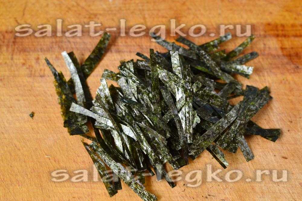 Лист нори измельчаем ножницами в мелкую крошку.