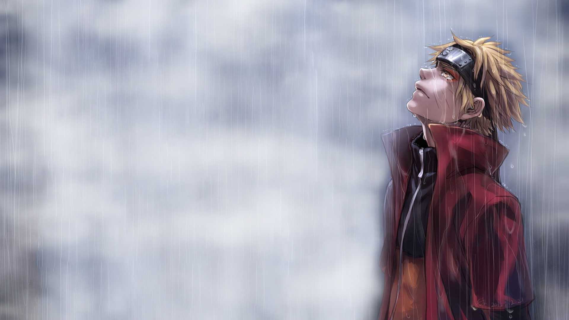 Задумчивый Наруто под дождём.