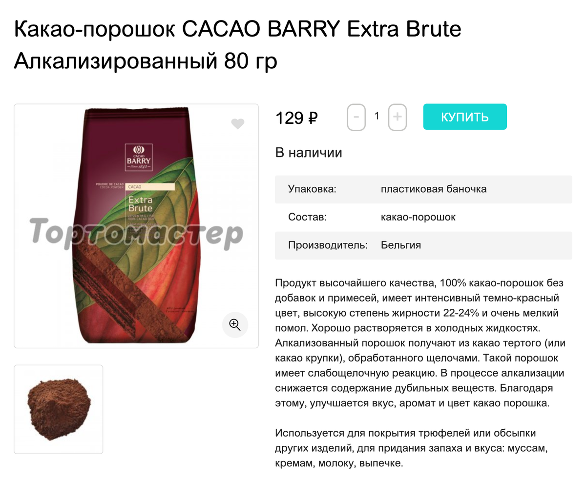 Я заказываю какао-порошок в «Тортомастере» по 120 Р за 80 г