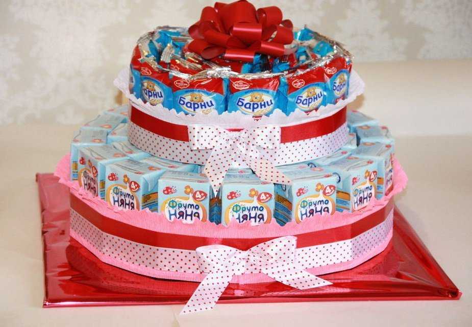 Как сделать детский торт из сока и Барни, киндеров, конфет, чупа-чупсов, чокопай, шоколадок, печенья, пироженых, мыльных пузырей?