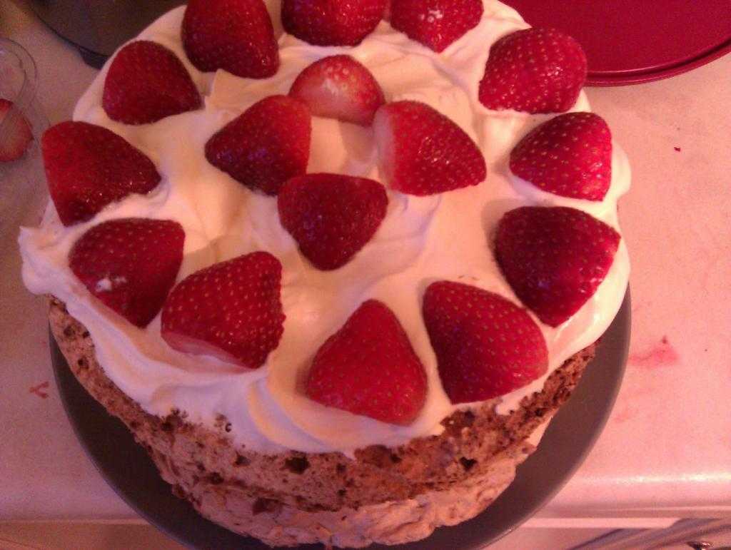 Торт с безе с лесным орехом и клубникой