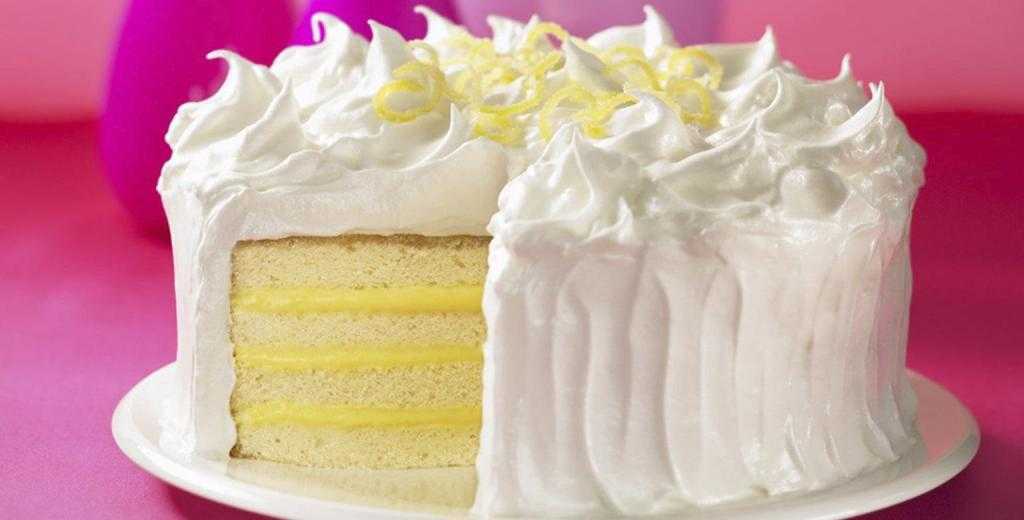 Как только бисквитные коржи испекутся и остынут, разрежьте каждый из них пополам горизонтально. Поместите первый пласт на сервировочную тарелку. Нанесите на него ровным слоем треть лимонной смеси. Повторите то же самое с остальными составляющими. Накройте верх торта приготовленным безе. Как можно увидеть, рецепт торта с безе с пошаговыми фото очень прост.