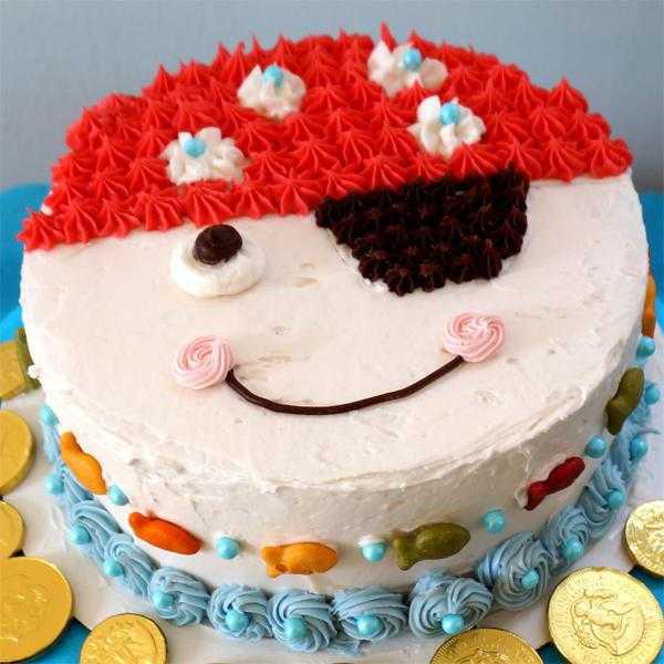 Следующий торт «Пиратский» понравится тем, кто не любит мастику. Честно говоря, готовить его легче легкого! Нам понадобится или шприц с насадкой. А за основу возьмем любой любимый рецепт, по которому приготовим торт круглой формы.