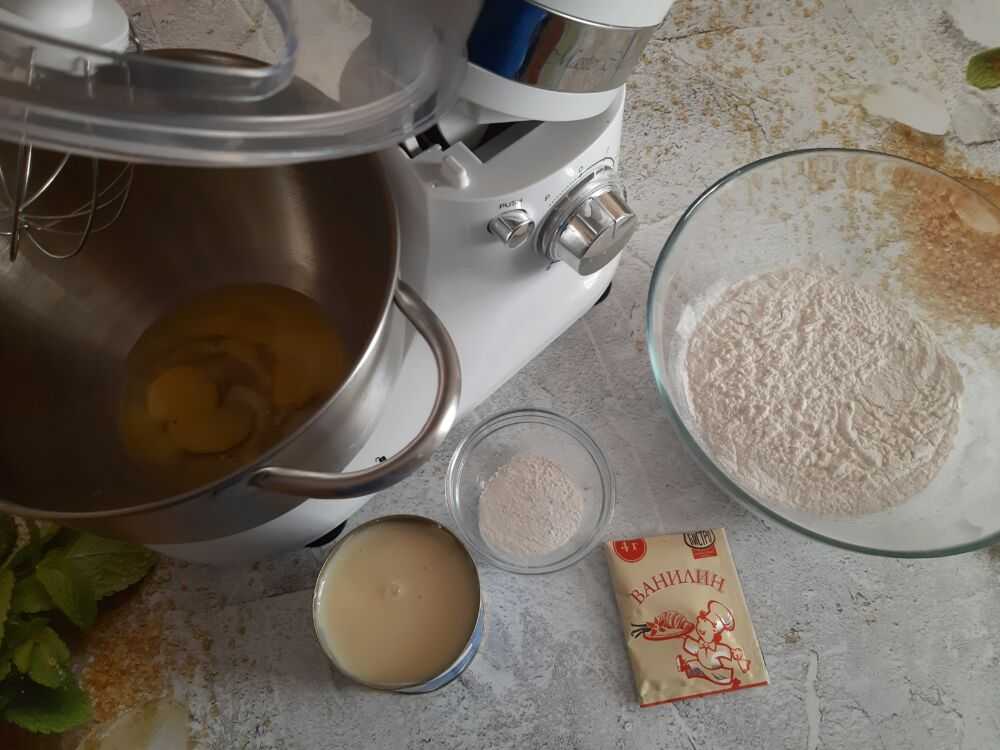 Шаг 1. Подготавливаем необходимый инвентарь и включаем духовку на разогрев, т. к. тесто на сгущенке готовится достаточно быстро.