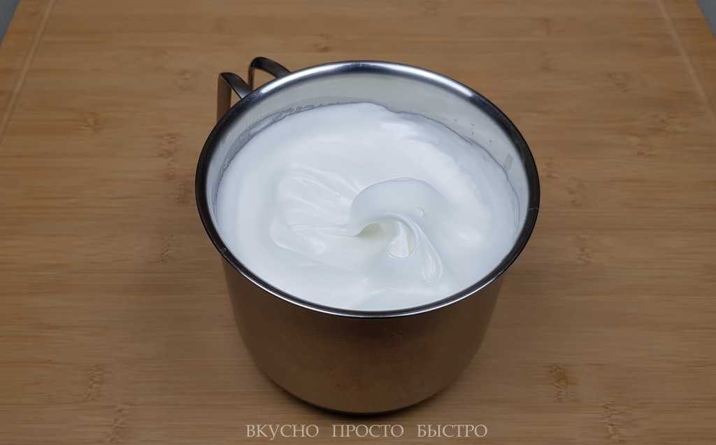 Когда сахар растворится постепенно увеличиваем скорость миксера до максимума, и на максимальных оборотах миксера взбиваем белки до мягких пиков.