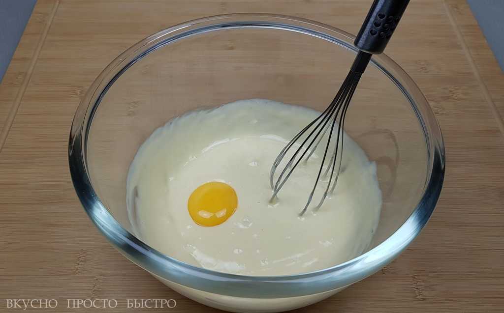 Долго перемешивать не надо, как только масса станет однородной, достаточно. Тесто должно оставаться воздушным.