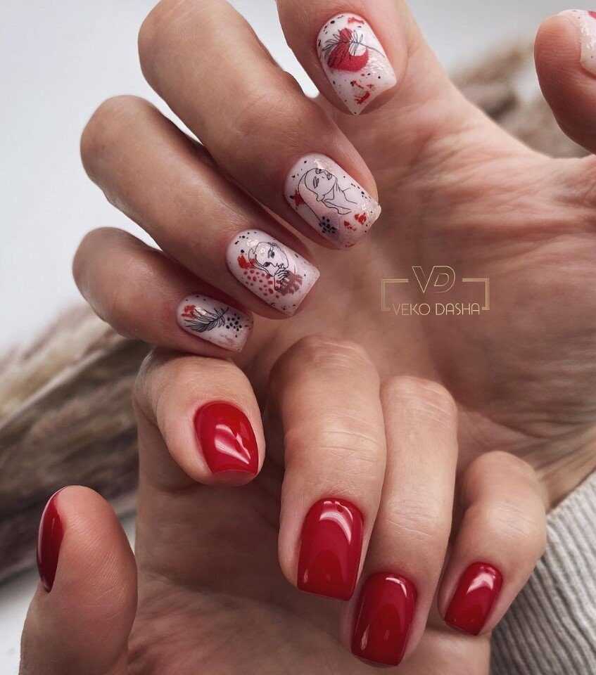 Красный — цвет страсти. Его предпочитают неординарные и смелые натуры. Многие не изменяют этому оттенку многие годы. Если хочется разнообразить маникюр, добавить текстуру камня и он обязательно заиграет новыми красками.