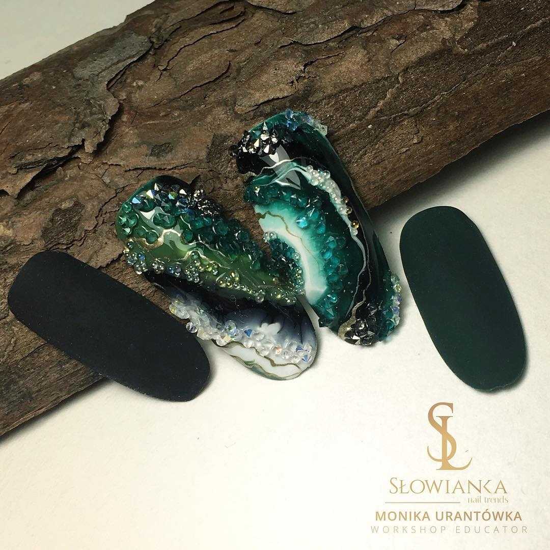 Плюс такого нейл-арта в том, что будущий рисунок должен быть максимально естественным и имитировать текстуру каменных прожилок. А значит, не придется быть предельно аккуратной