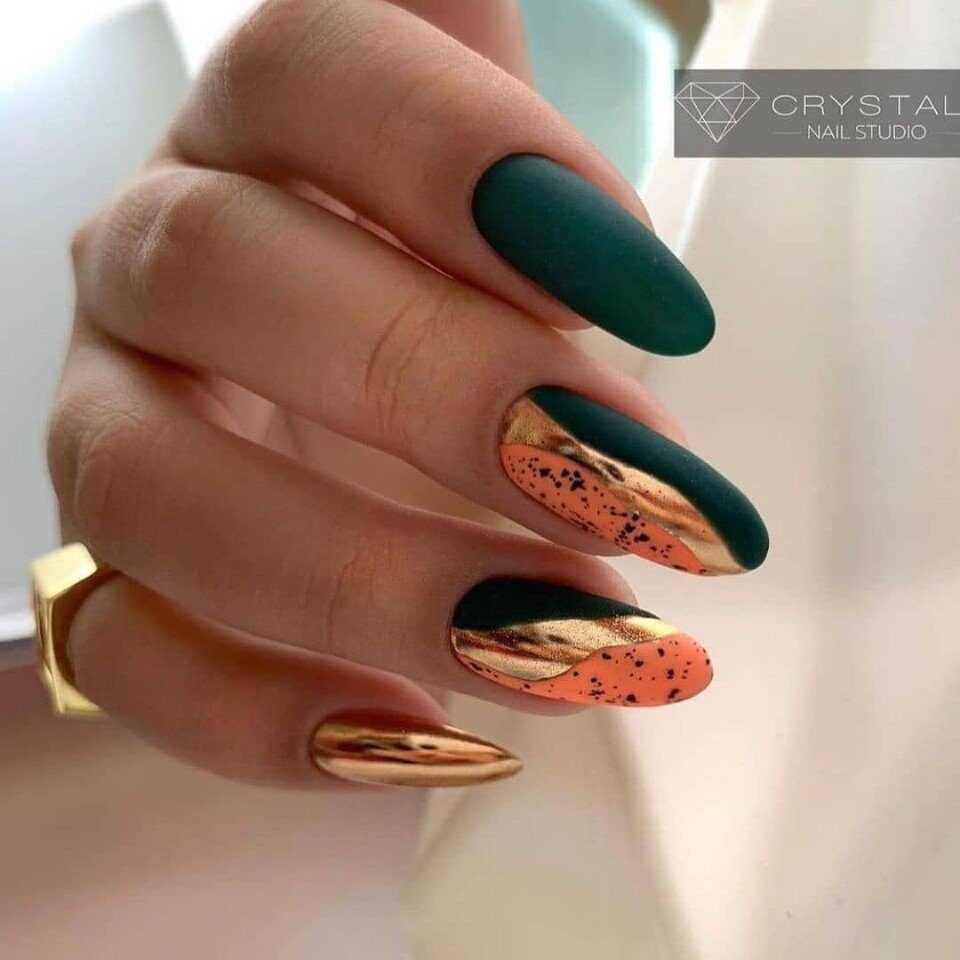 Черный — один из главных трендов 2023. Это благородный глубокий цвет, который станет отличной базой для прожилок любого контрастного оттенка. Топовым в сезоне считается маникюр с черной базой и золотыми каменными прожилками.
