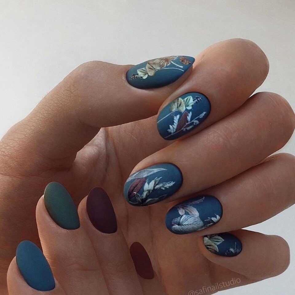 Глубокий синий всегда находится в топе оттенков лака. Это цвет королей и отличная замена черному, если он кажется вам слишком уж мрачным. Синий фон подружится с бежевым, золотым и серебряным, белым.