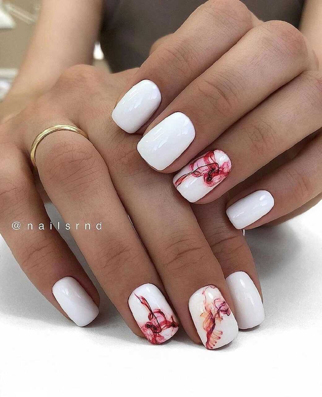 Мраморный маникюр представляет собой хаотичное расположение на ногтевых пластинах плавных линий и разводов, которые создаются путём одновременного смешения нескольких оттенков лака, в результате чего покрытие имеет сходство с узором на одноимённом камне. В качестве основы для таких рисунков, как правило, используются белый, чёрный, серый и другие сдержанные цвета, благодаря которым подобное оформление идеально дополняет любой образ и подходит модницам любой возрастной категории. При этом совсем не запрещается экспериментировать с техниками и декором, а также использовать для создания мраморного нейла более яркие оттенки, например, красный, ведь как мы уже говорили, эффект мрамора может быть реализован во множестве идей.
