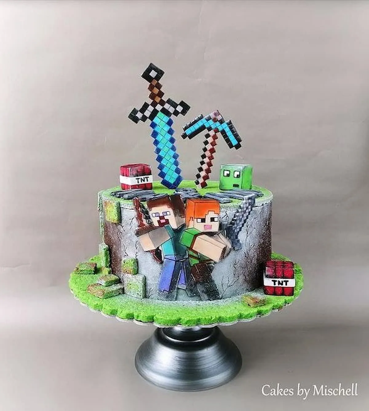 2) Торт с мечом и киркой