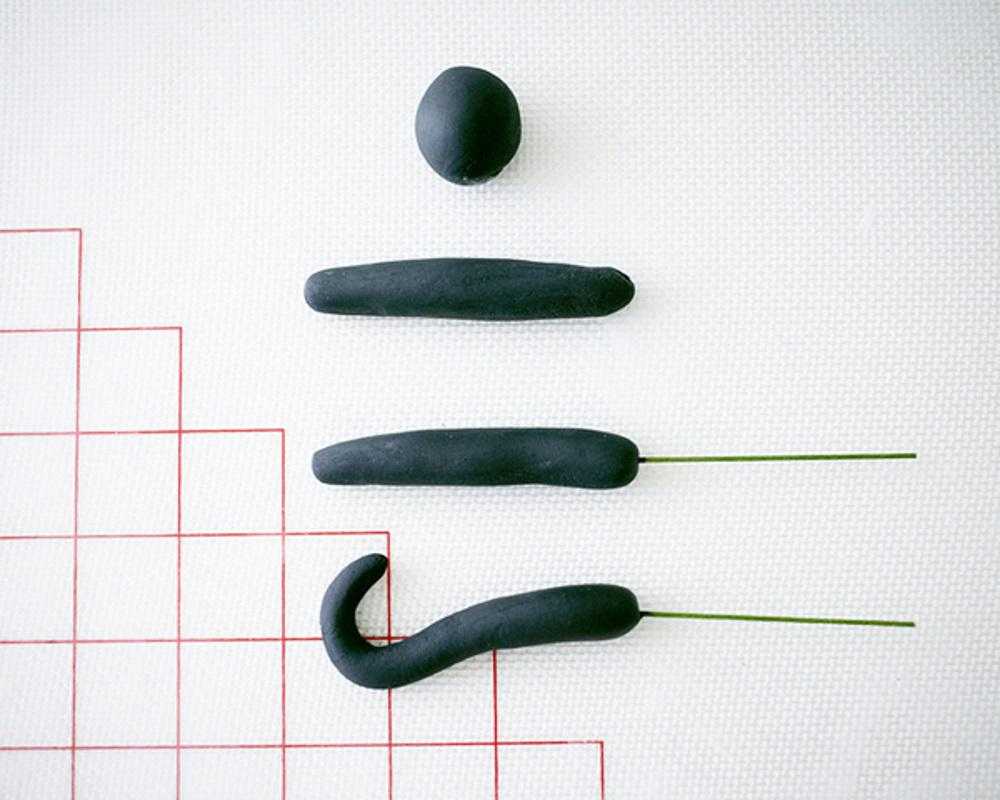 - Сделать оранжевый треугольный носик. Скатать колбаски – лапки, хвостик. Детали скрепить водой или водкой. Все элементы насаживать на зубочистки, тонкие шпажки.