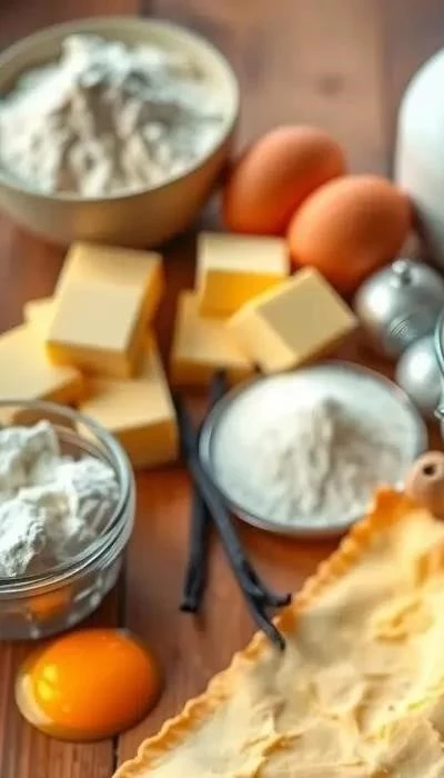Для приготовления нежного и ароматного заварного крема, который идеально дополнит слои нашего торта Наполеон, вам понадобятся следующие ингредиенты: 1 литр молока (желательно жирностью 3,2% или выше), 3 крупных куриных яйца, 280 грамм сахара-песка, 40 грамм кукурузного крахмала, 40 грамм пшеничной муки и 20 грамм ванильного сахара (или 1 чайная ложка ванильного экстракта). Использование кукурузного крахмала придаст крему особую нежность и гладкость.
