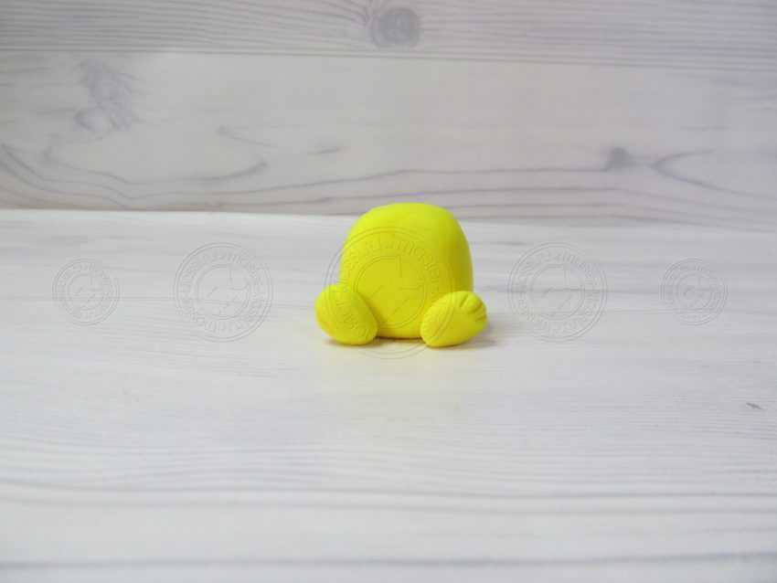 Теперь можно переходить к формированию ступней. В данном случае требуется как следует выделить эту часть тела Пикачу. Используя мастику, аккуратно начните формировать ступни таким образом, чтобы поверхность была гладкой, без волн и неровностей.