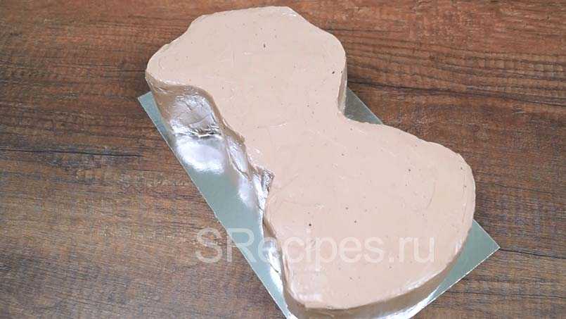 Полностью покрыть торт тонким слоем крема и поставить в холодильник на 1 час.