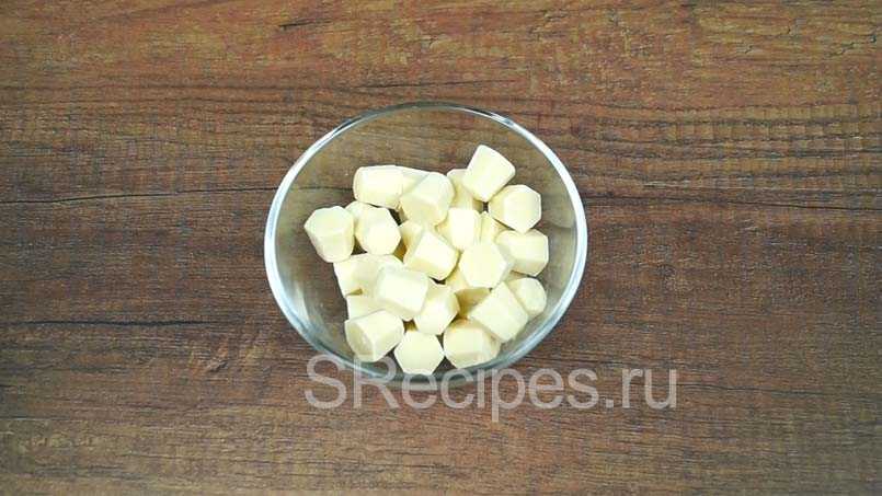 - Вылейте тесто в квадратную форму, заранее смазанную сливочным маслом.