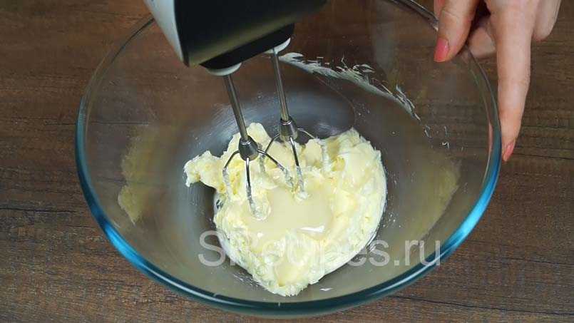 В средней миске взбить сливочное масло комнатной температуры на средней скорости миксера, примерно 1 минуту.