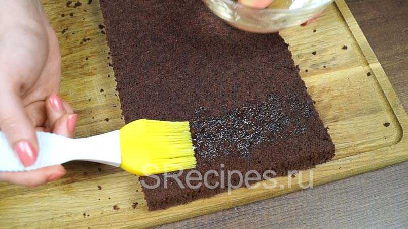 Теперь, нужно хорошо пропитать сиропом каждый корж сиропом.
