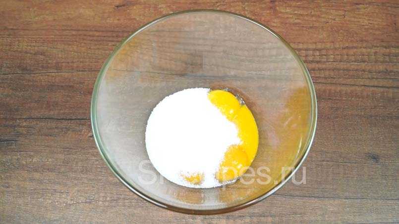Отделить белки от желтков. К желткам добавляем ванильный сахар и половину обычного сахара. Миксером или венчиком взбить до побеления и увеличения массы в объеме.