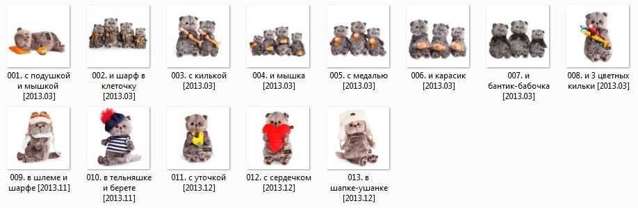 001. – Басик с подушкой и мышкой — {18,26}002. – Басик и шарф в клеточку — {19,22,25,30}003. – Басик с килькой — {22,25}004. – Басик и мышка — {19,22,25,30}005. – Басик c медалью — {19,22,25,30}006. – Басик и карасик — {19,22,25}007. – Басик и бантик-бабочка — {19,22,25}008. – Басик и 3 цветных кильки — {30}009. – Басик в шлеме и шарфе — {19,22,25,30}010. – Басик в тельняшке и берете — {19,22,25,30}011. – Басик с уточкой — {19,22,25,30}012. – Басик с сердечком — {19,22,25,30}013. – Басик в шапке-ушанке — {19,22,25,30}
