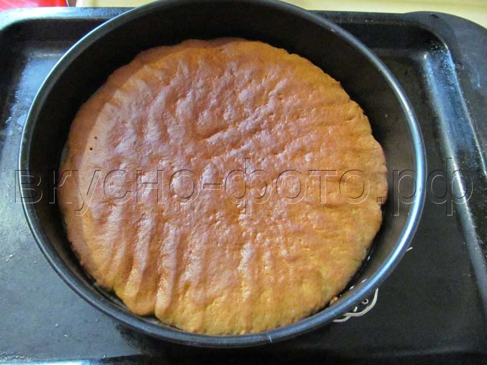 Выпекать в заранее разогретой до t=180~200°C духовке — 13~18 минут. Точно так же выпекаем второй корж и оставляем их на столе остывать.
