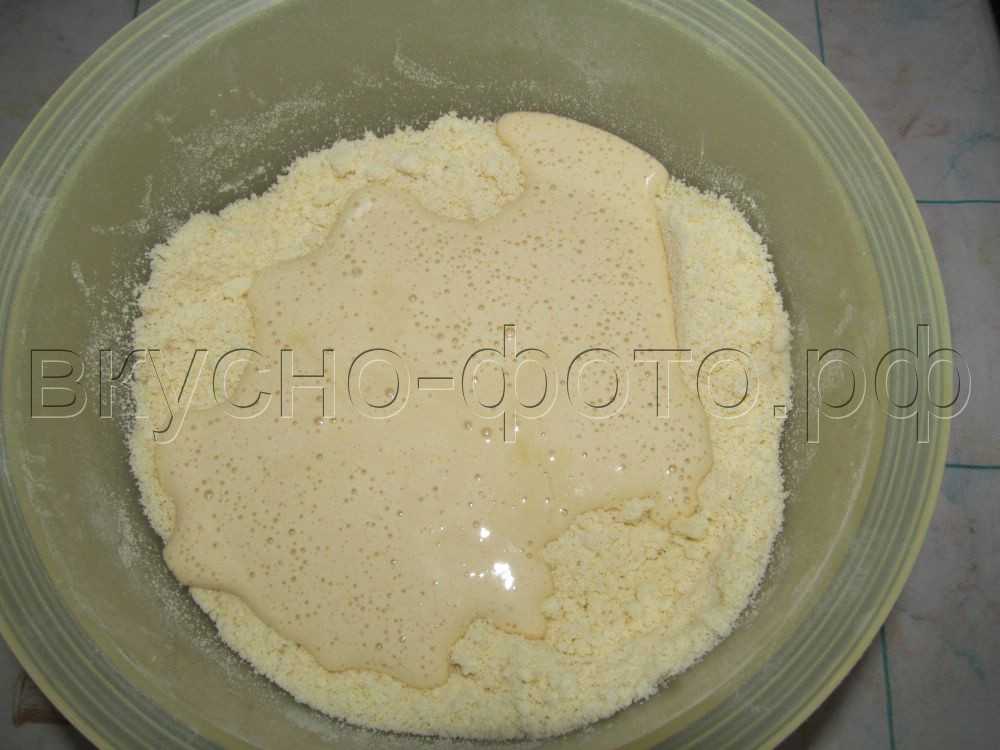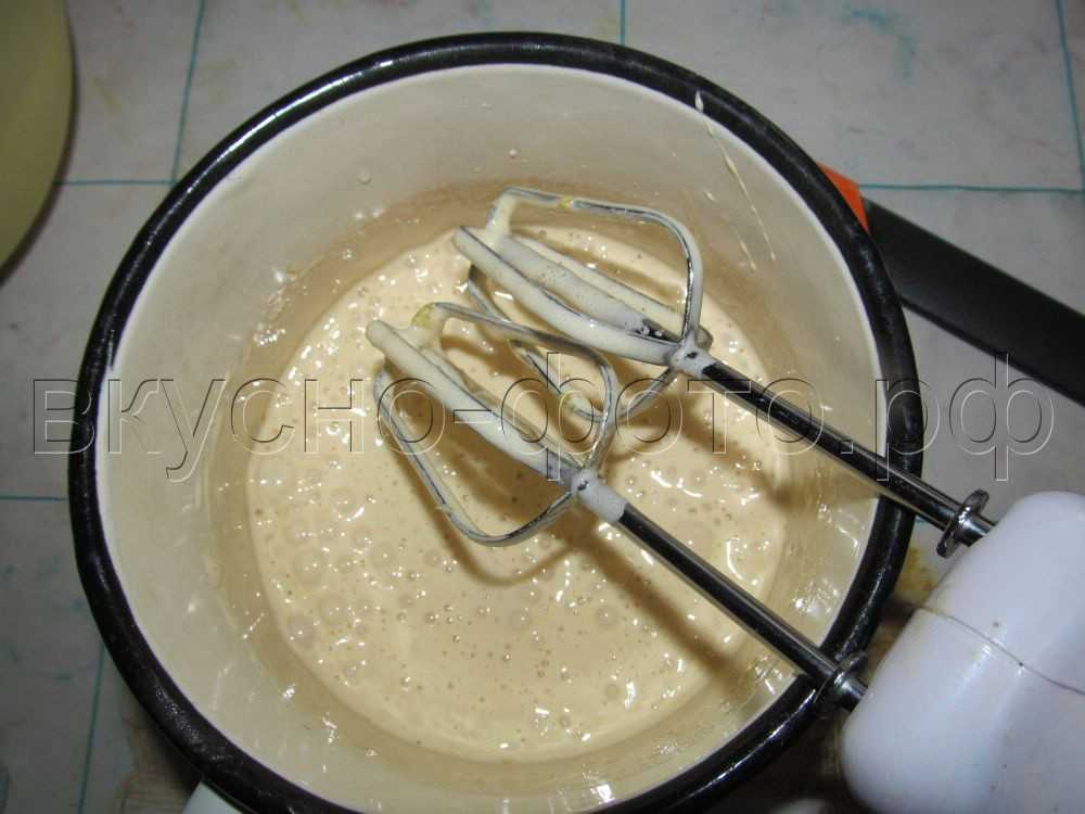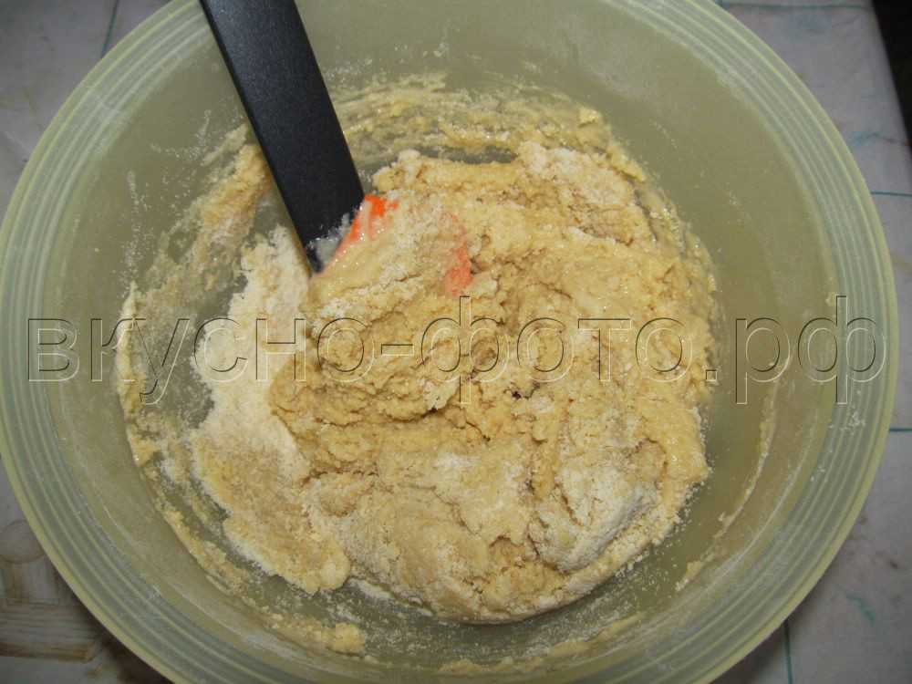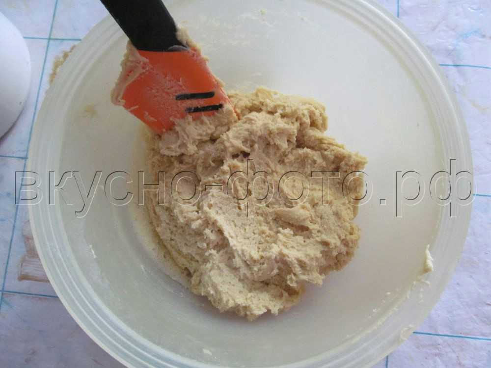 Тесто должно получится густым, липким и легко перемешивающимся.