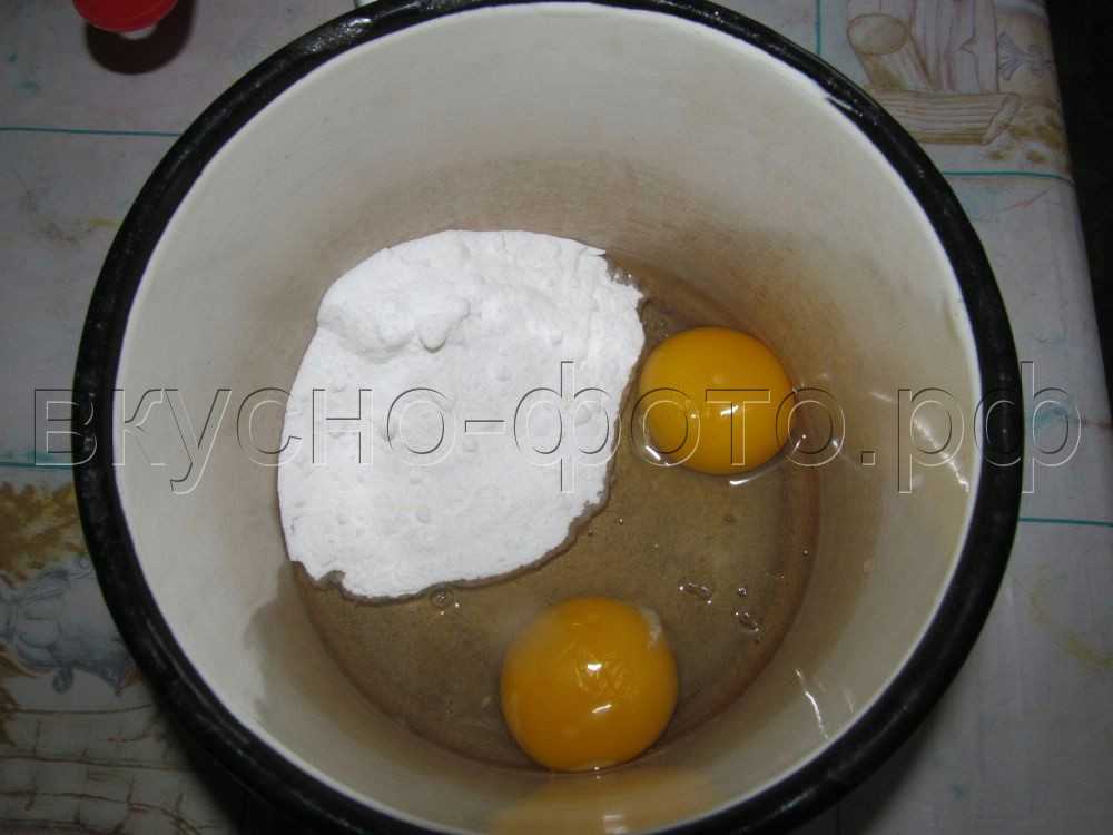 В другой кастрюльке взбиваем яйца с сахарной пудрой.