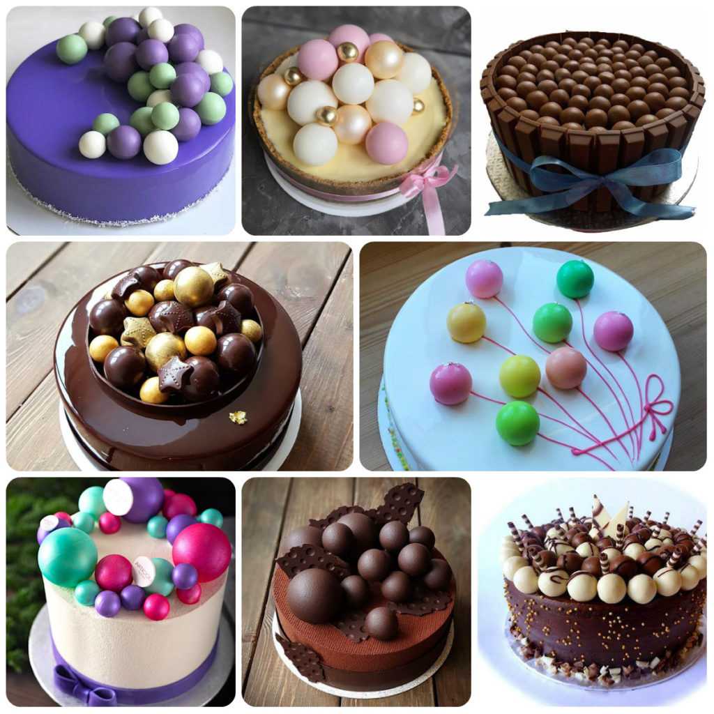 Торт, украшенный шарами из шоколада, может быть приготовлен по разным вариантам десерта. Особенно популярными среди них стали рецепты со сгущенкой, шоколадным кремом. А красивое эффектное угощение к празднику позволит приготовить мастика.
