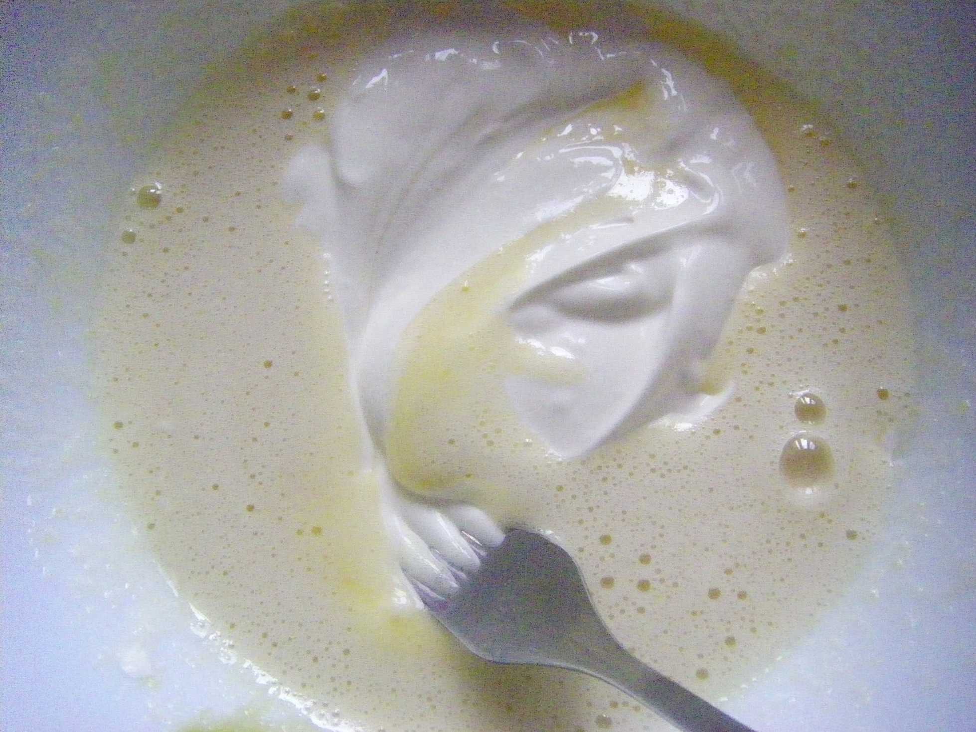 Соду погасить уксусом и добавить в готовое тесто. Ещё раз взбить.Гасить соду нужно обязательно, так как если пропустить этот пункт,то в тесте может остаться солёный привкус соды.